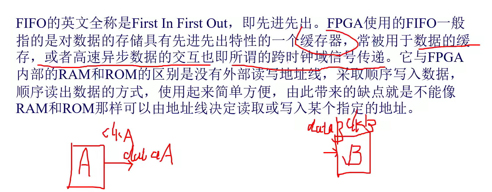 IP核与FPGA 内部的 RAM 和 ROM 的区别是没有外部读写地址线,采取顺序写入数据,顺序读出数据的方式,使用起来简单方便,由此带来的缺点就是不能像 RAM 和 ROM 那样可以由地址线决定读取或写入某个指定的地址。
