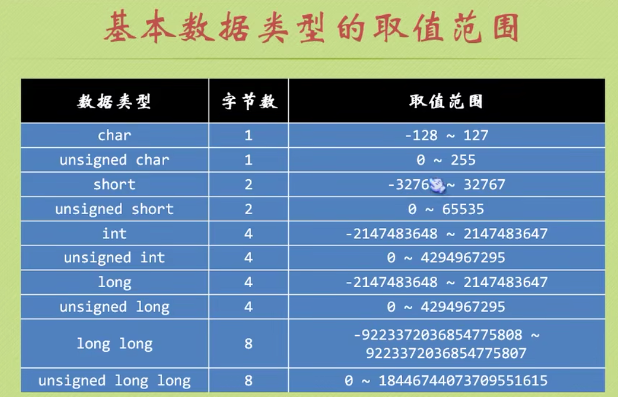 short、int、long等整型类型默认带符号,等价于 signed short。