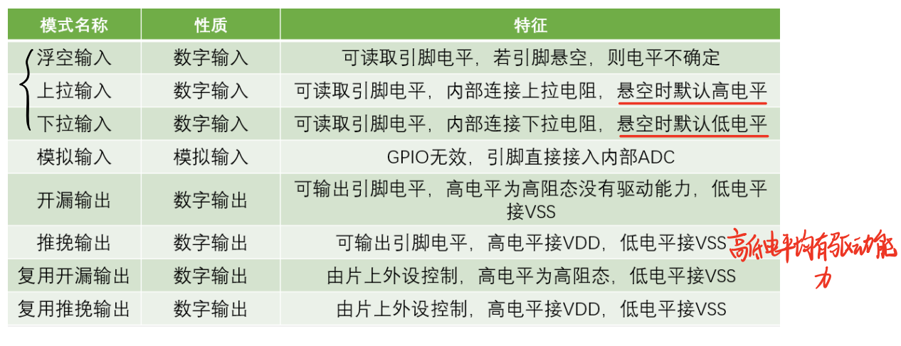 在推挽输出下,P-MOS和N-MOS均有效,数据寄存器为1时,上管导通,下管断开,输出接到VDD输出高电平,反之同理。这种模式下高电平均有较强的驱动能力,所以又称强推输出模式。